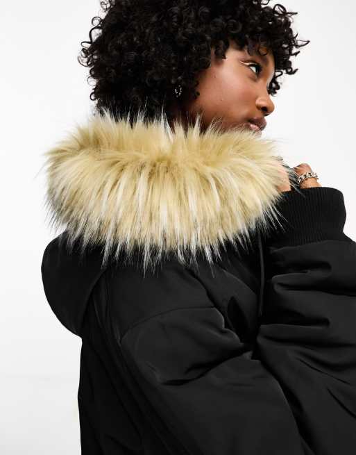 Threadbare Prune oversized parka jacket with faux fur trim hood in stone