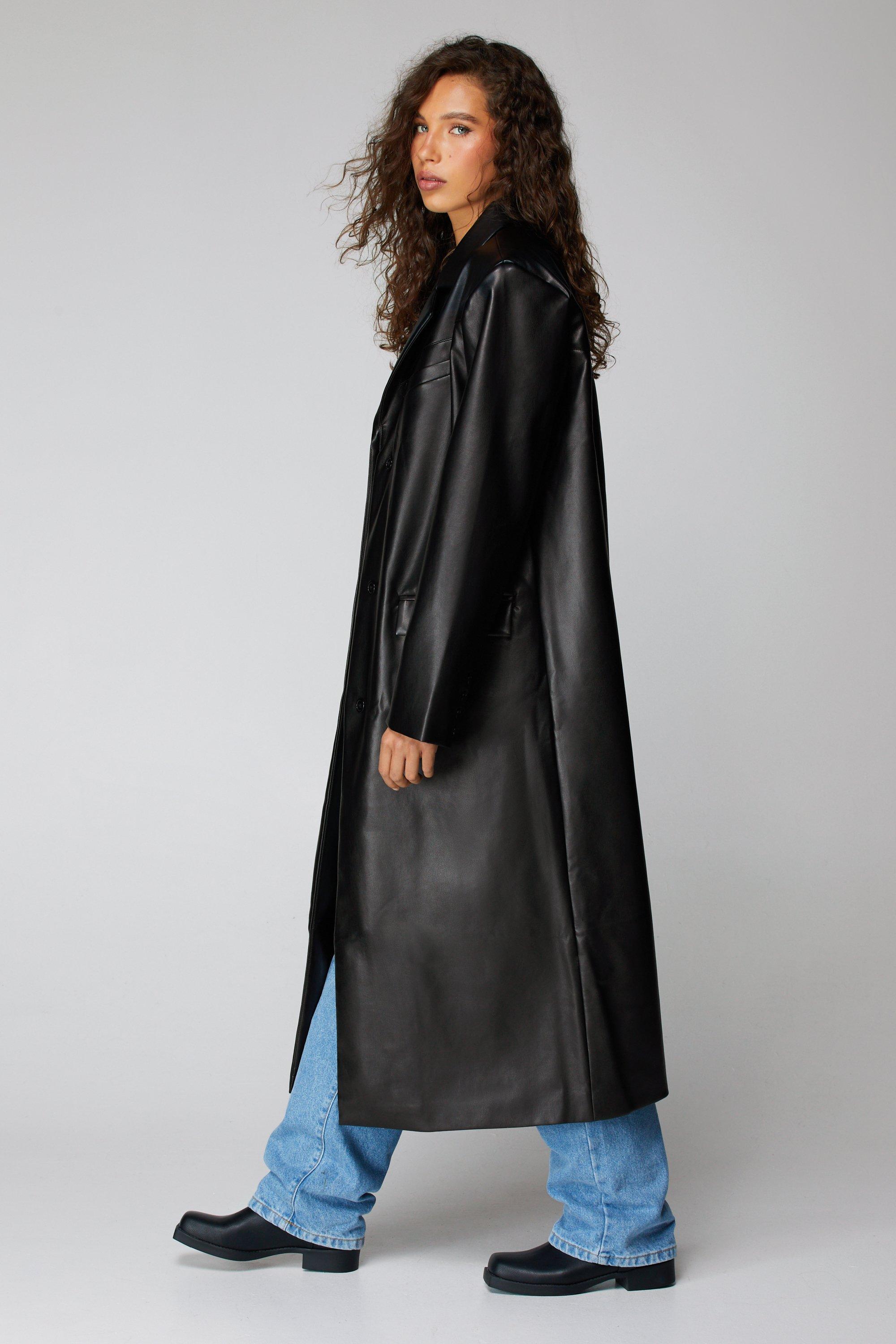 Black Faux Leather Waterfall Maxi Duster Jacket PrettyLittleThing
