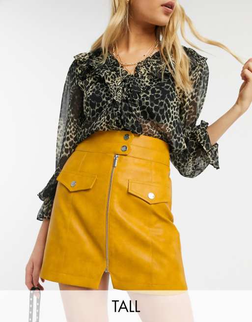 Topshop Tall faux leather zip through mini skirt in mustard