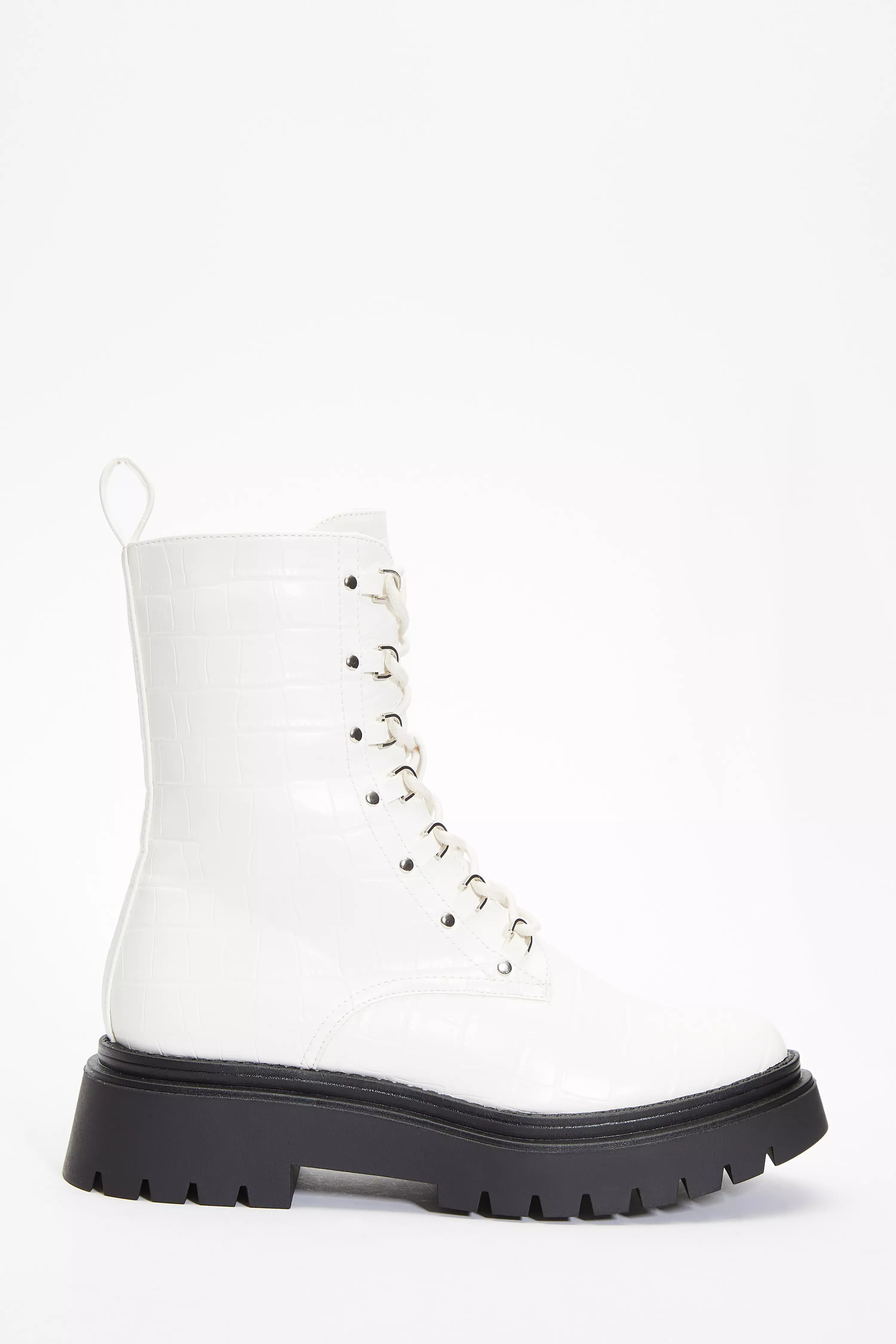 White Faux Leather Chunky Ankle Boots QUIZ Clothing