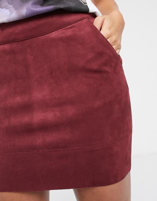 Burgundy Faux Suede Mini Skirt Skirts PrettyLittleThing