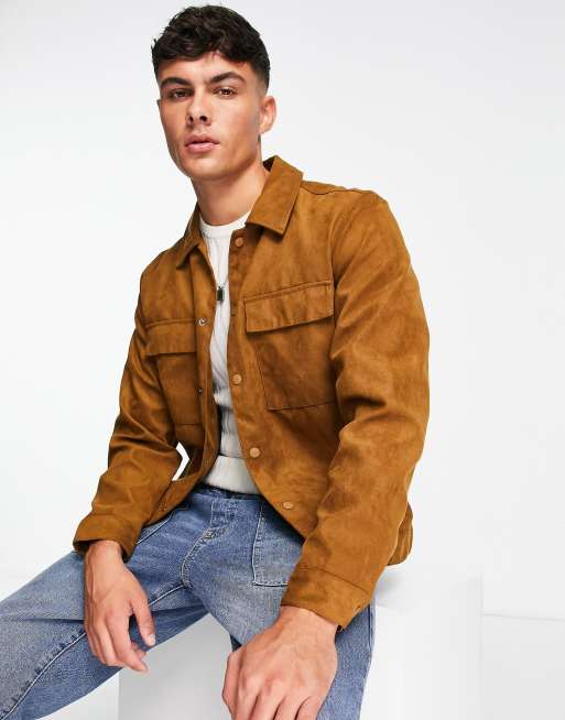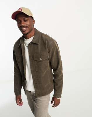 Abercrombie Fitch faux suede trucker jacket in olive green ASOS
