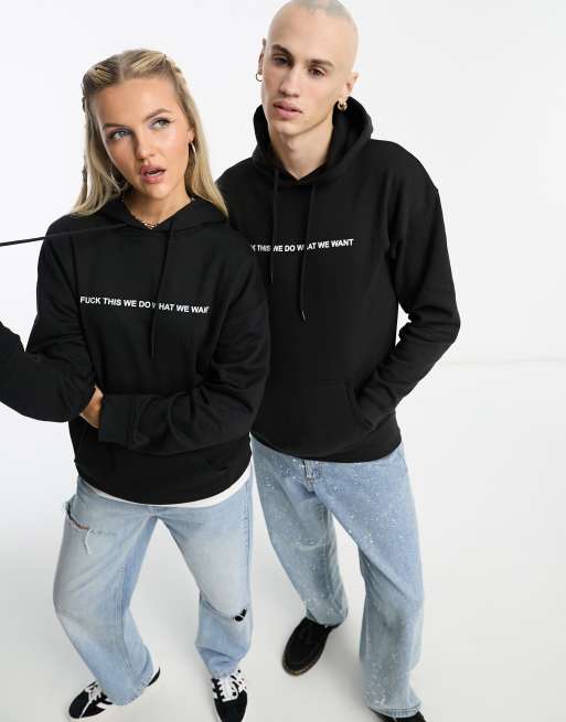 COLLUSION Unisex Felpa con cappuccio nera con scritta