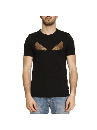 Fendi MONSTER EYE Black T Shirt with Metal Embellishment