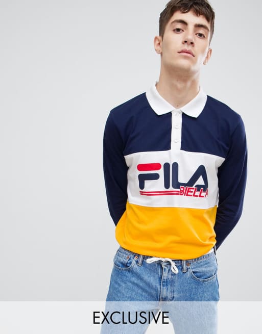 Fila long sleeve rugby polo shirt with retro panel logo in navy ASOS