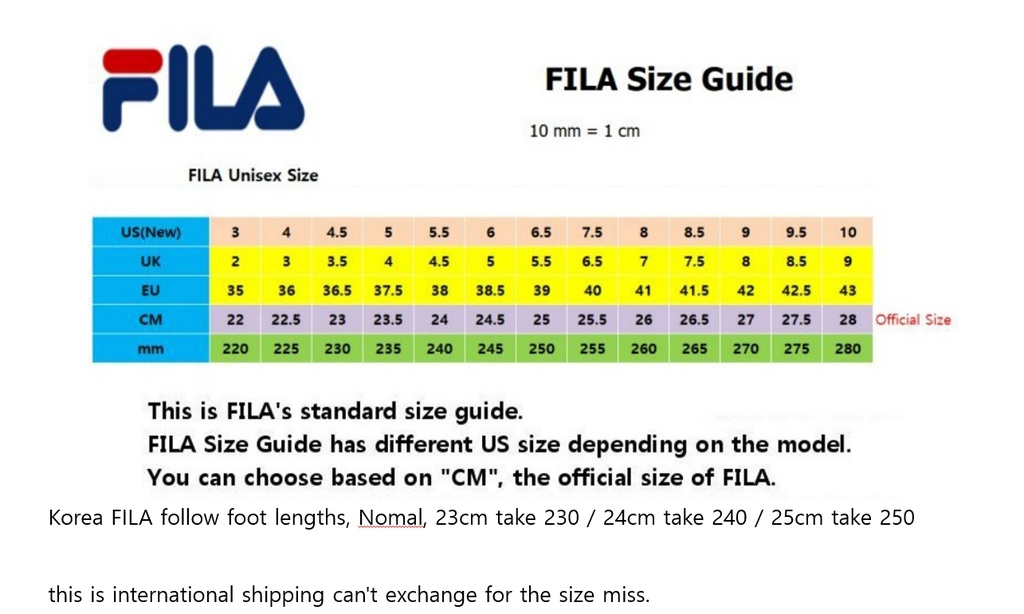 Fila Size Guide