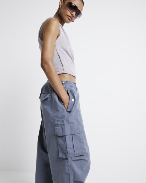 Grey parachute cargo trousers River Island
