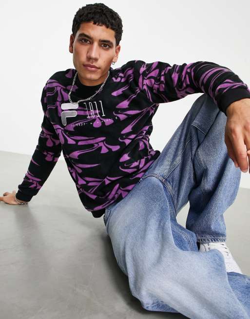 Fila sweat noir clearance, Fila Sweat logo Noir et violet ASOS clearance