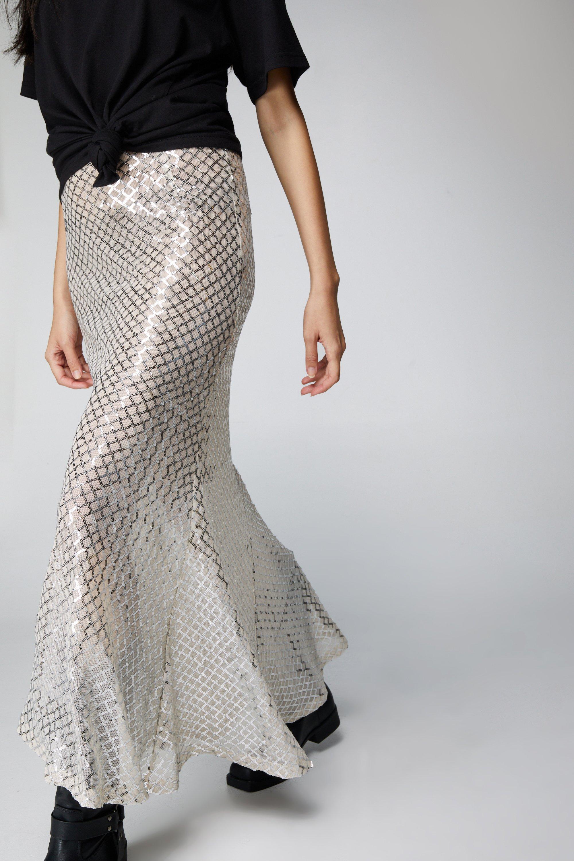 Fishtail sequin skirt clearance, Sequined Mermaid Long Skirt Girls High Waist Fishtail Print Temu clearance