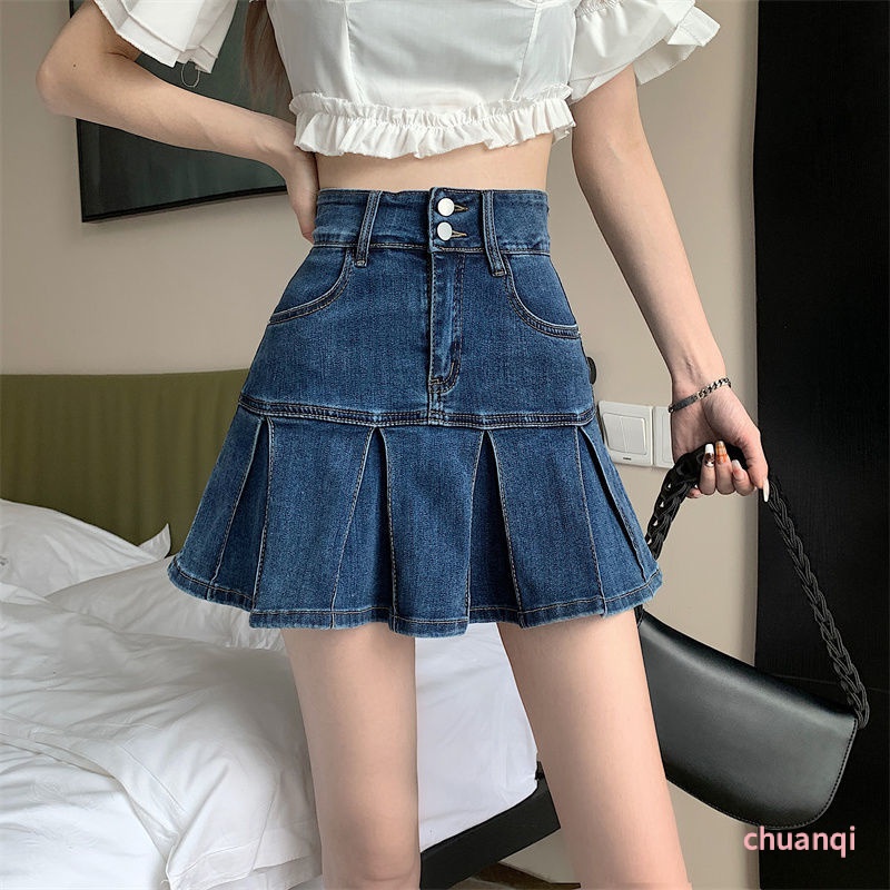 Hot Girl Fashion Ultra Short Denim Skirt Women High Waist Ruffles