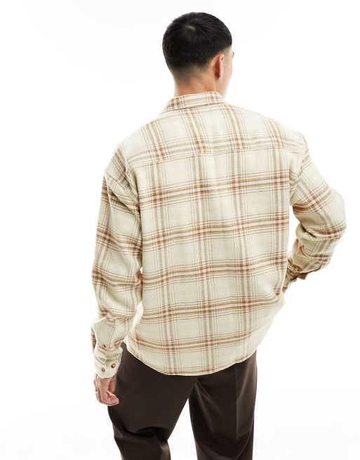 ASOS DESIGN 90s oversized brushed flannel check shirt in beige ASOS