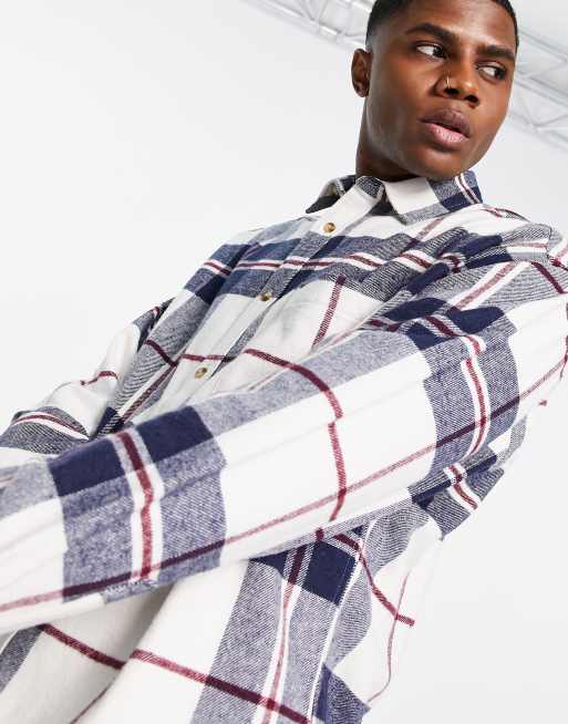 Flannel jacket asos clearance, ASOS DESIGN 90s oversized brushed flannel check shirt in cream in cotton blend clearance