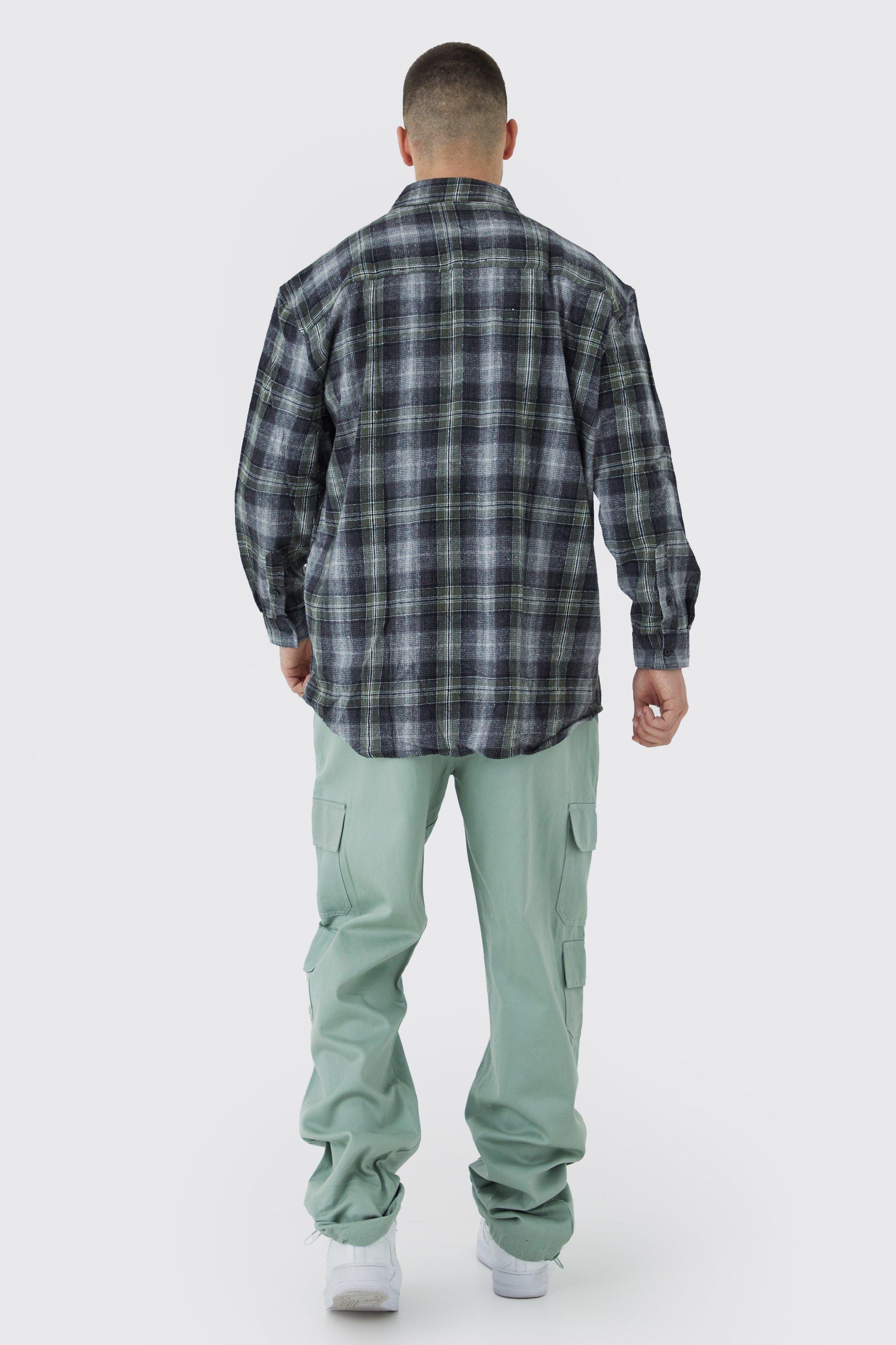 Men s Tall Longsleeve Oversized Check Flannel Overshirt Boohoo UK