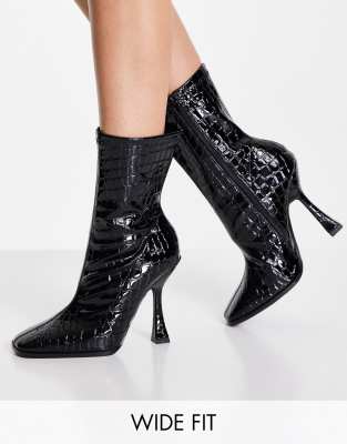Public Desire Wide Fit Craving flare heel ankle boots in black patent