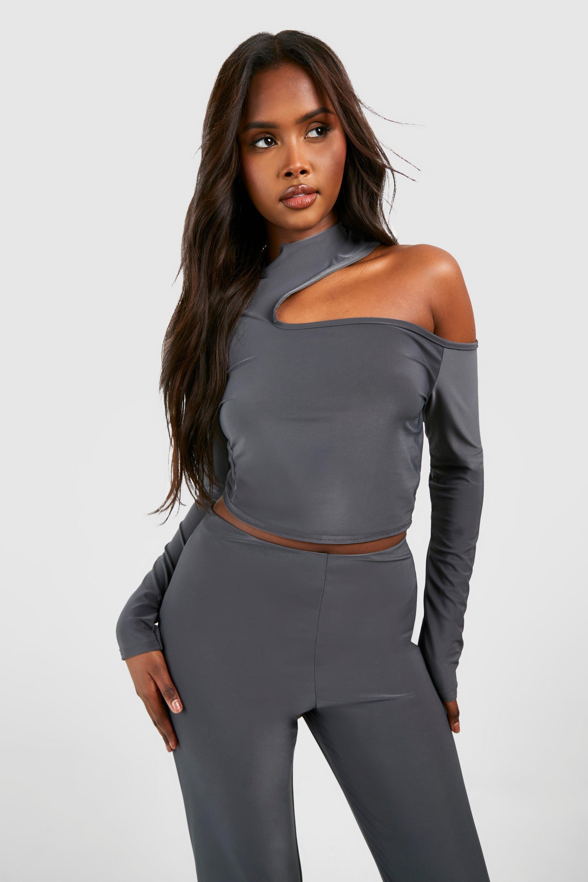 High Neck Cut Out Long Sleeve Top Flared Trouser boohoo