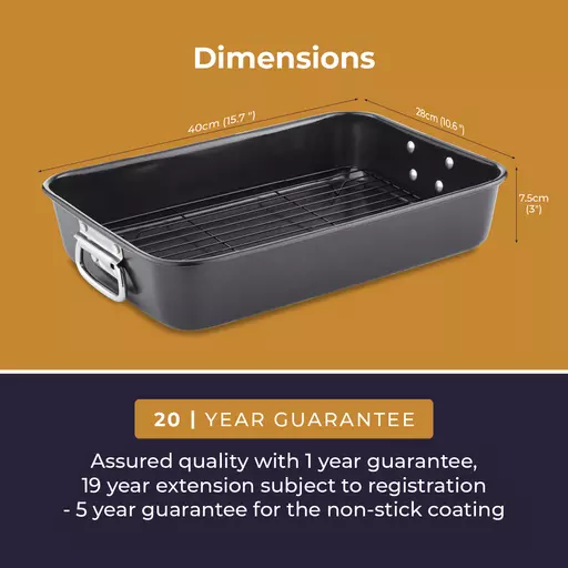 Chef Pomodoro Nonstick Carbon Steel Roasting Pan Roaster with Flat Rack 16 x 11 Inch 41cm x 28 cm Large Grey Bakeware Rectangular Oven BBQ