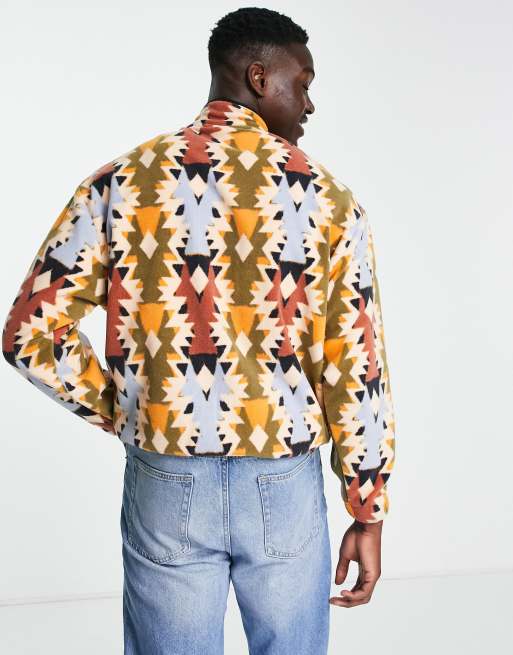 ASOS DESIGN oversized festival fleece jacket in all over print