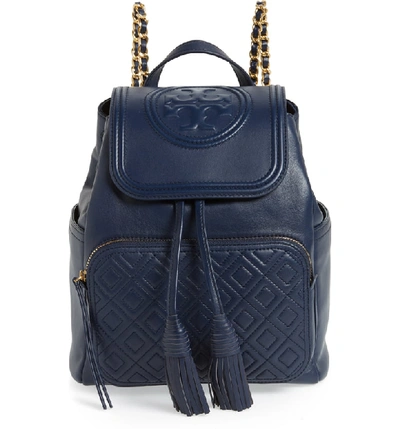 Tory Burch Fleming Lambskin Leather Backpack Blue In Royal Navy