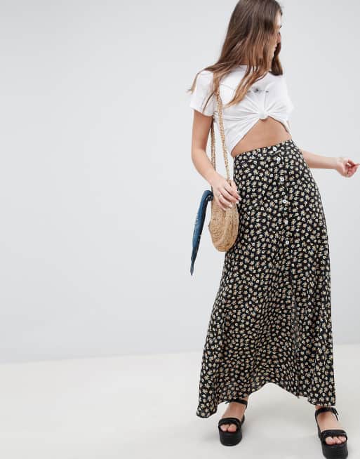 Floral Print High Waist Button down Maxi Skirt The Boho Birdy