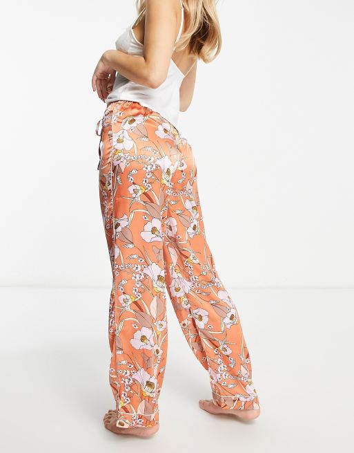 River Island satin floral pajama pants in orange