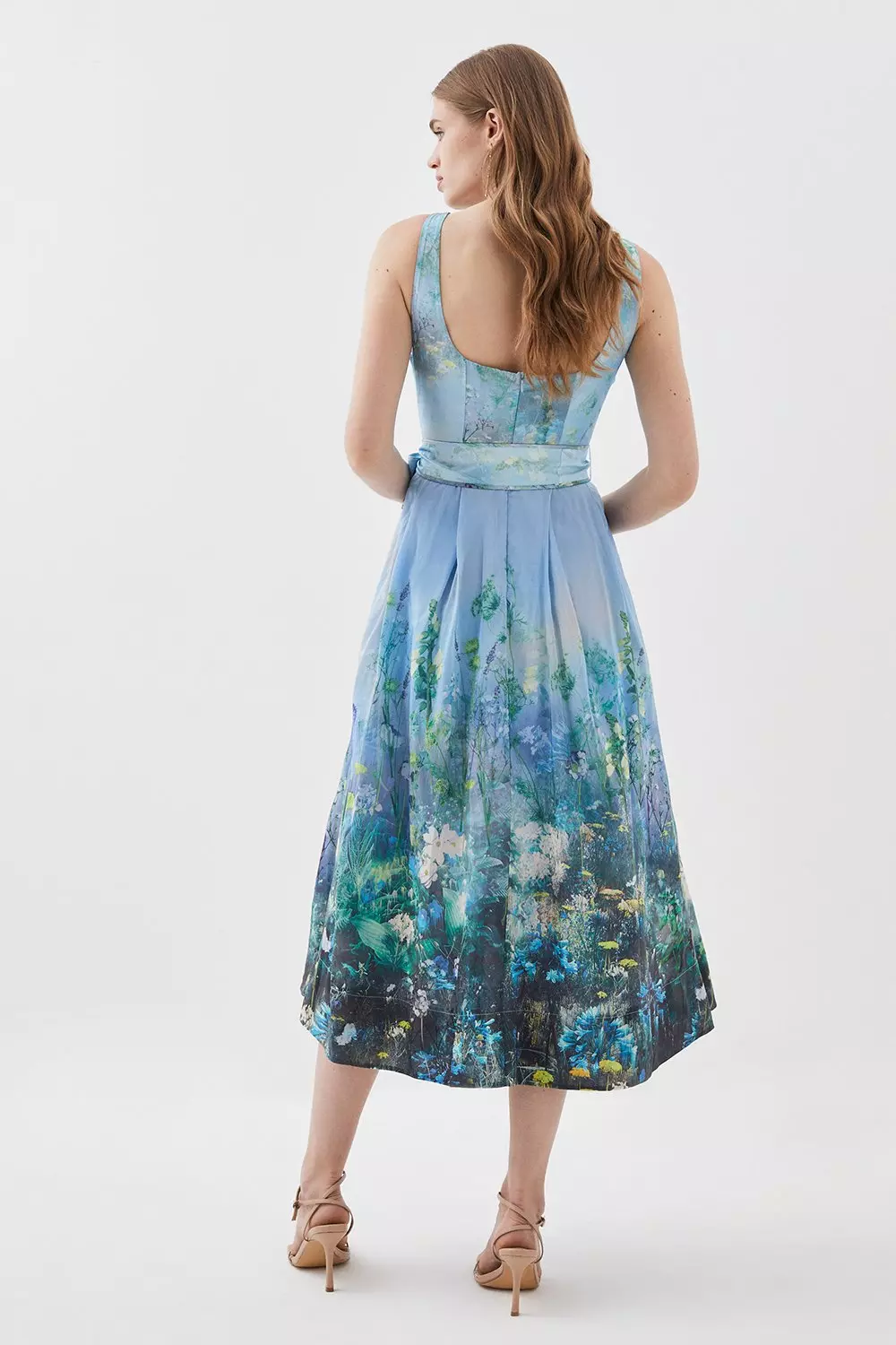 Floral strappy midi skater dress clearance, Lydia Millen Petite Cotton Scenic Floral Strappy Midi Dress clearance