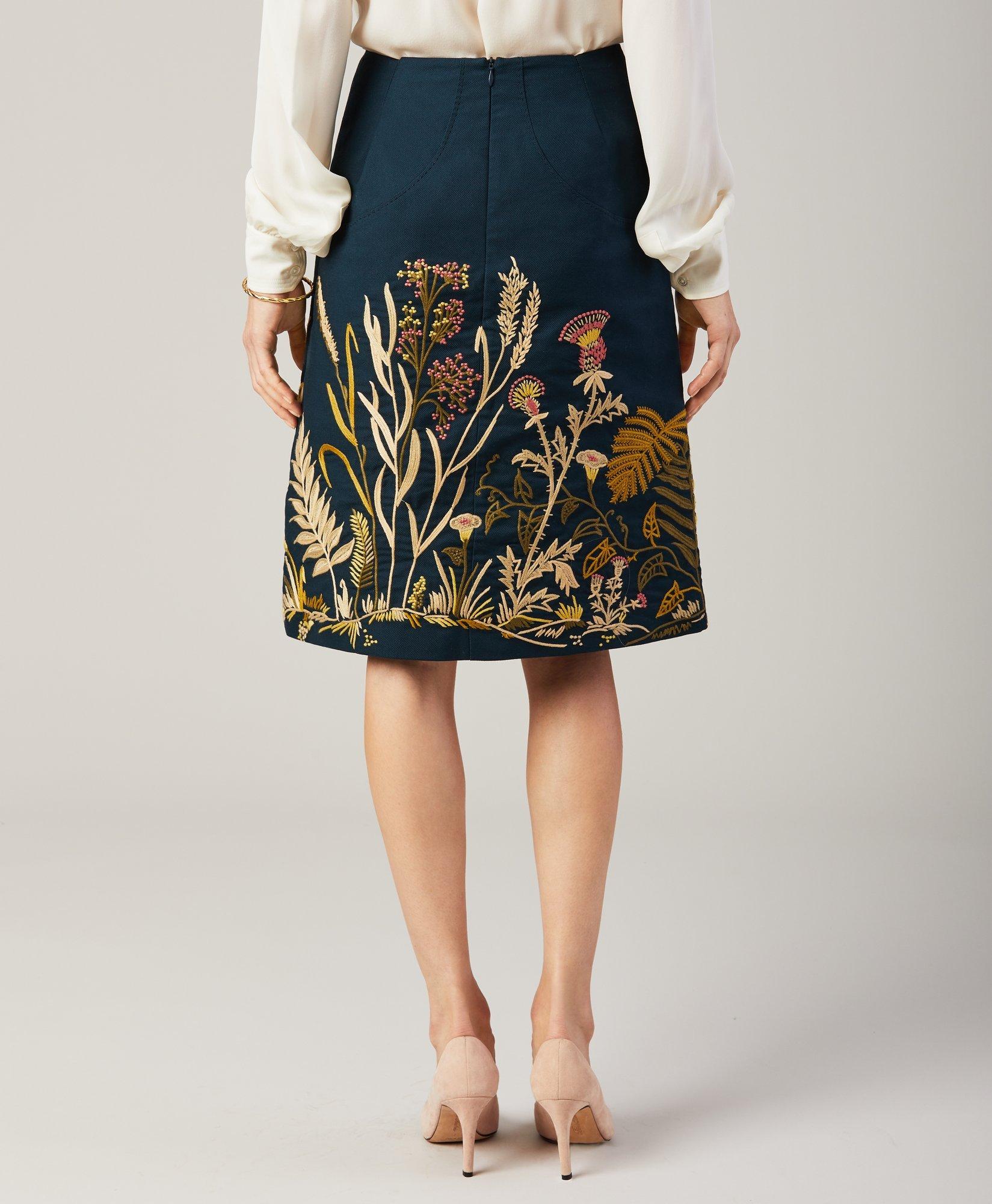 Floral Embroidered Stretch Cotton Canvas Skirt
