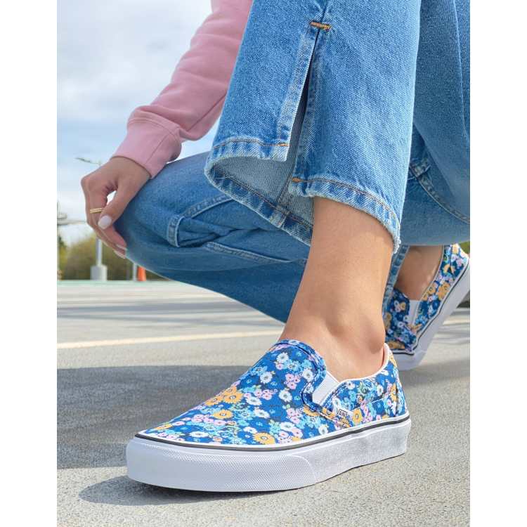 Flower slip on vans clearance, Vans Classic Slip On Shoes Black Peace Floral clearance