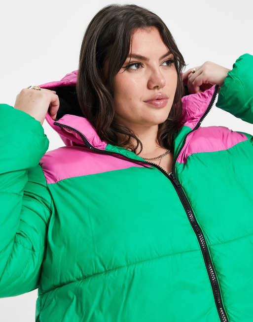 Noisy May Curve exclusive padded short coat in bright pink and green