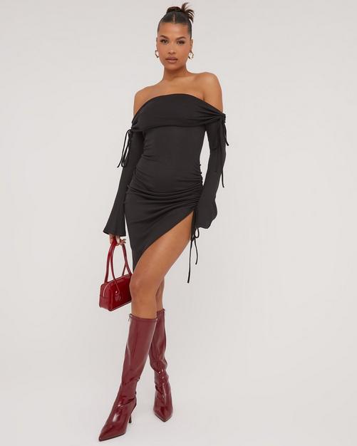 Fold over bardot dress clearance, Bardot Fold Over Detail Mini Bodycon Dress In Black EGO clearance