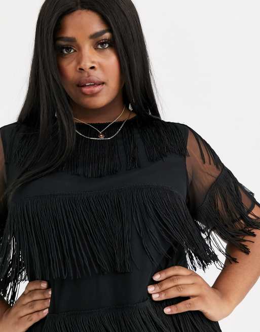 Forever 21 fringe dress clearance, ASOS DESIGN Curve fringe shift t shirt mini dress ASOS clearance