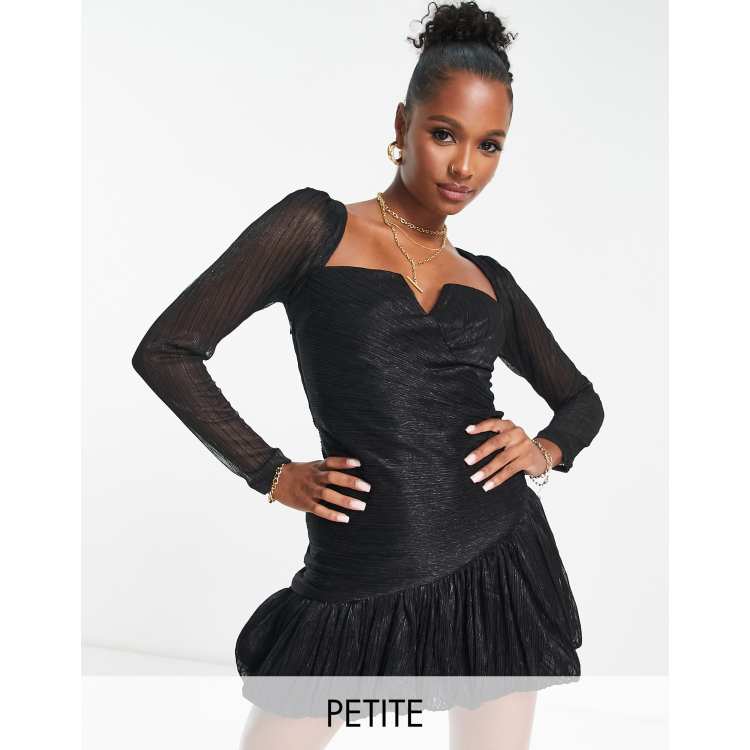 Forever New Petite ruched metallic bubble hem mini dress in black