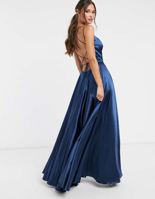 Forever Unique satin maxi dress in navy