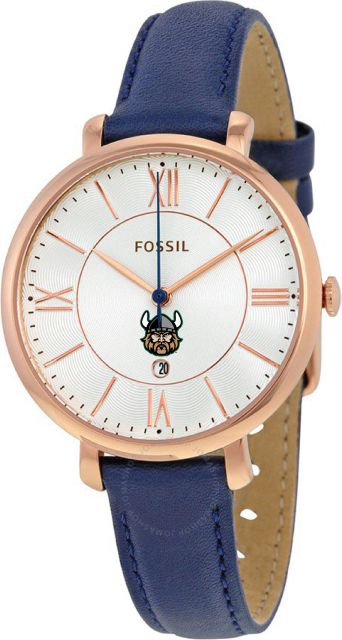 Fossil jacqueline navy leather watch clearance, Fossil Jacqueline White Dial Blue Leather Strap Watch for Women clearance