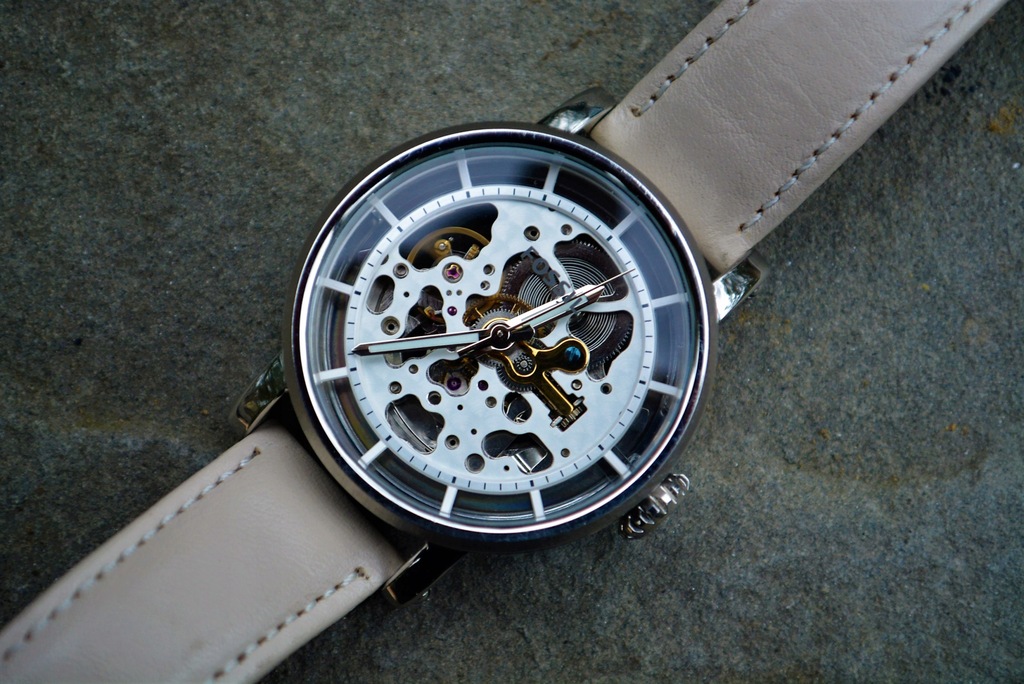 Fossil me3069 clearance, Fossil Boyfriend Automatic Skeleton Silver Dial White Leather clearance