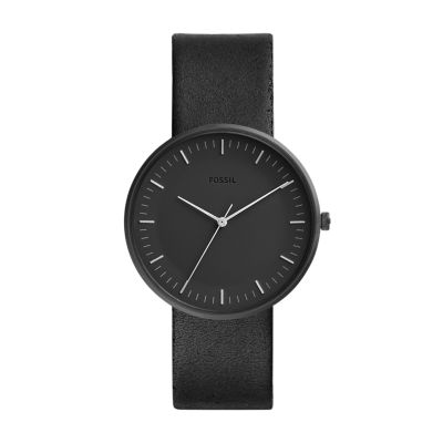 Essentialist Three Hand Black Leather Watch FS5516 Fossil