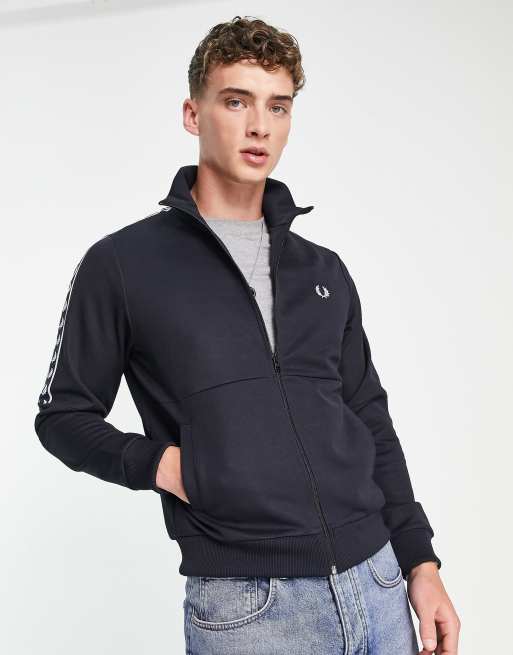 Fred Perry panelled taped track jacket in black ASOS