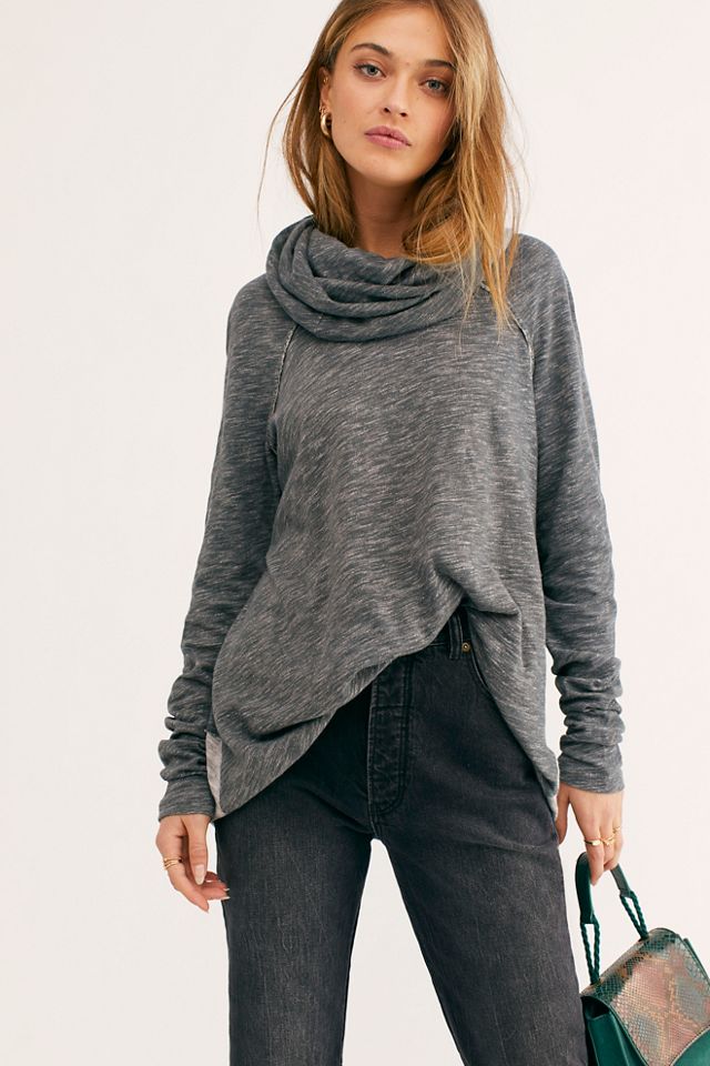 Free People Beach Cocoon Cowl Neck Pullover Top OS One Size Gray