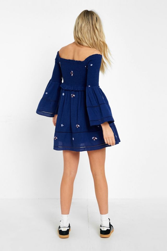 Free people counting daisies dress clearance, Free People Counting Daisies Blue Embroidered Off the Shoulder clearance