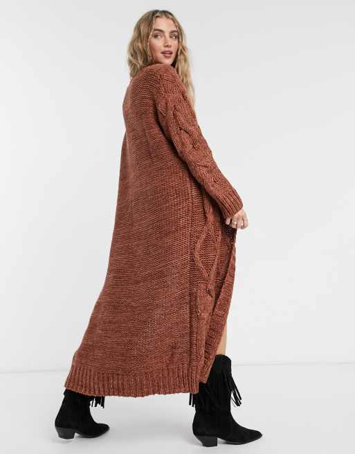 Free People Keep In Touch maxi cardigan in brown ASOS