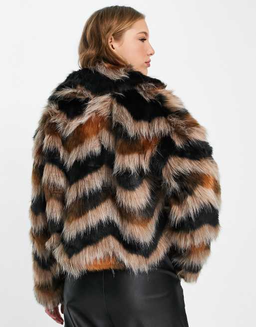 French Connection Dallow faux fur jacket in multi zig zag ASOS