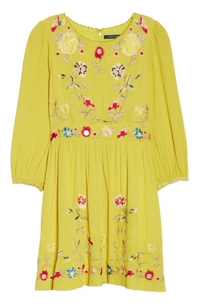 French Connection Saya Crepe Embroidered Flared Dress Yellow
