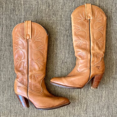 70s Vintage Frye Boots Sz 8 High Heel Leather Cowboy Boot Designer
