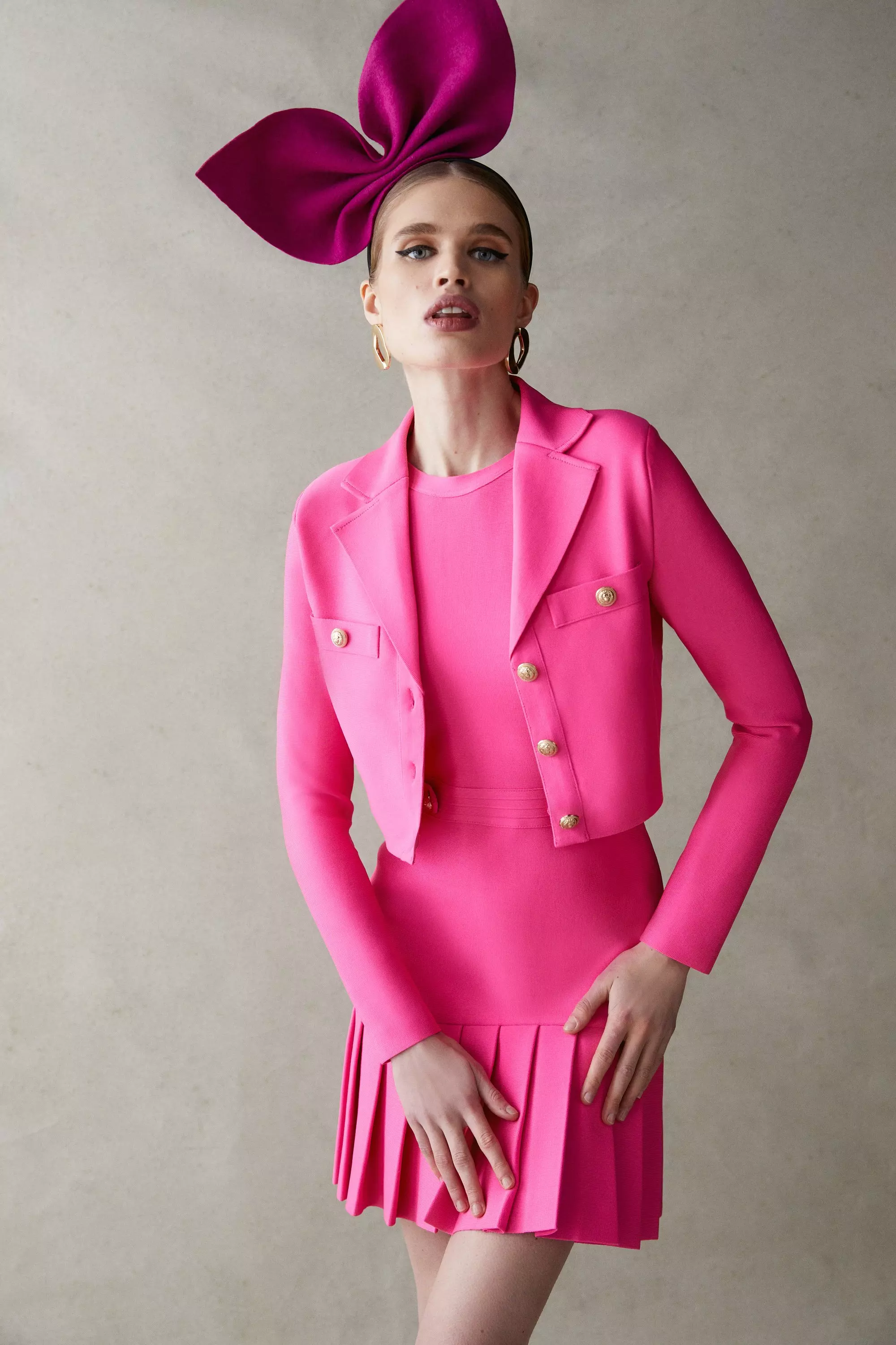 Boutique PAULE KA Fuchsia pink wool crepe short jacket Retail