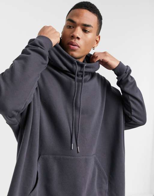 ASOS DESIGN extreme oversized funnel neck hoodie in washed black