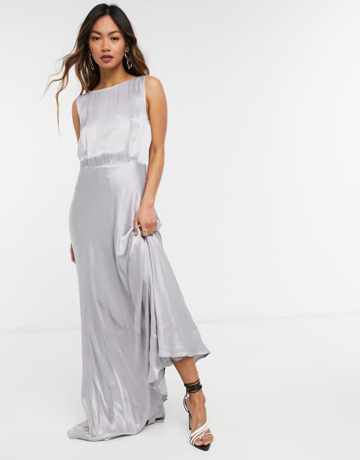 Ghost London bridesmaid satin maxi dress in fog grey ASOS