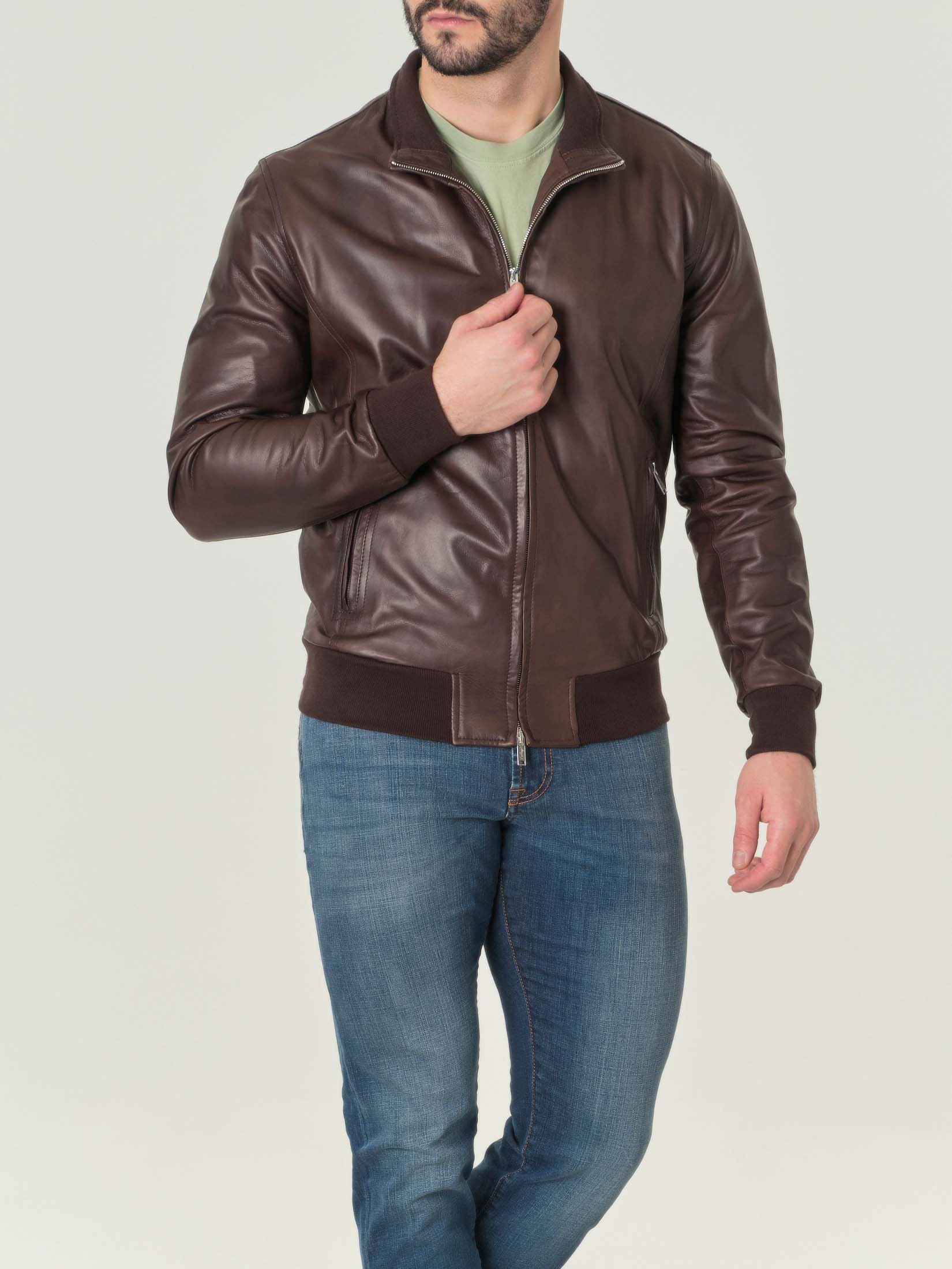 Giacca vera pelle clearance, Giacca bomber in vera pelle testa di moro clearance