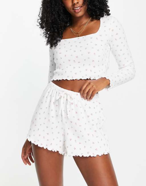 Gilly Hicks square neck pajama top in white ditsy floral part of
