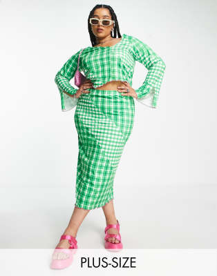 Only Curve exclusive maxi skirt co ord in green gingham 11.50