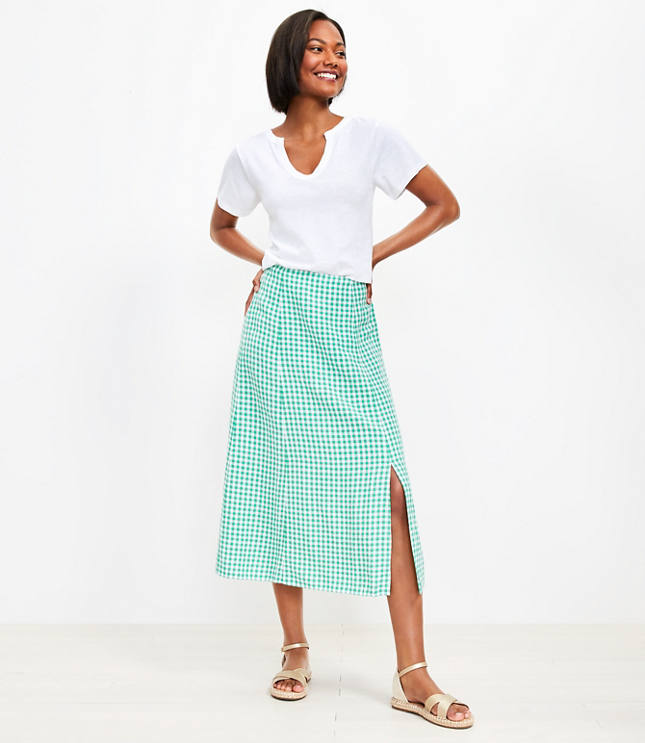 Gingham skirt with slits clearance, Gingham Skirts Clothing clearance