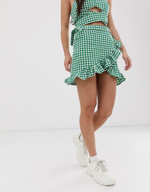 Gingham Wrap Mini Skirt in Green Chi Chi London
